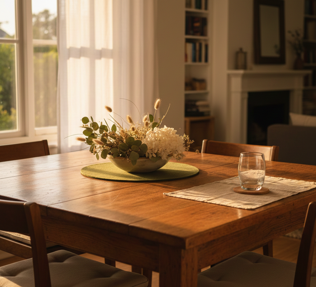 • Masa Örtüsü ve Koruması: Yemek masalarında örtü kullanın veya masa üstü koruyucu bir panel tercih edin.